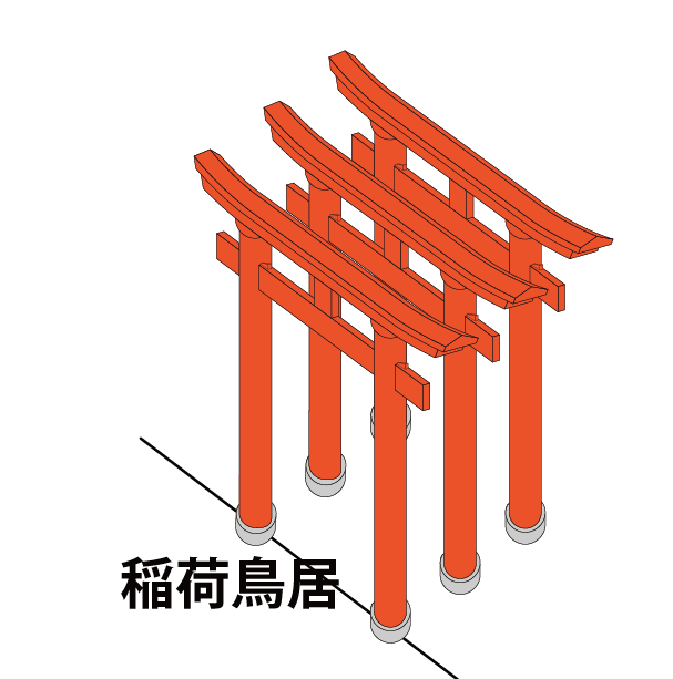 日本で最も多い稲荷鳥居(いなりとりい)も明神鳥居の一種です。