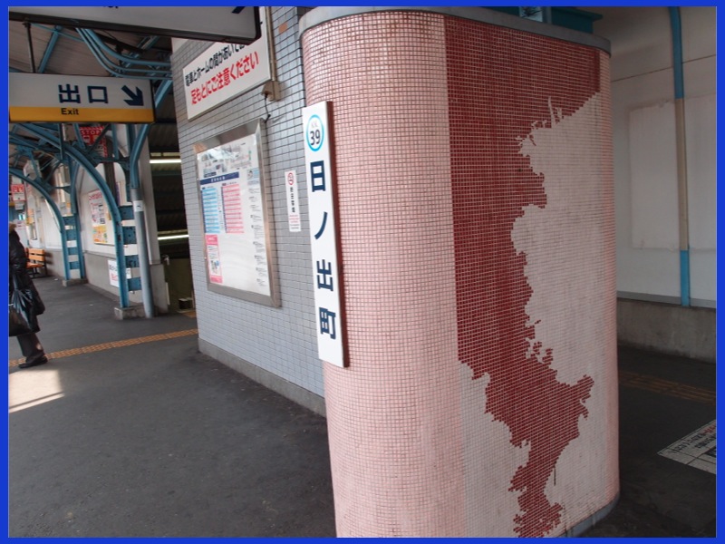 この駅の象徴、昔から残っているタイル模様の三浦半島。 |