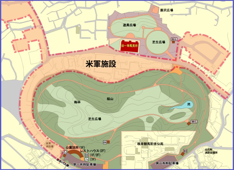この市内一等地に残る「根岸森林公園」は、実は完全に返還された訳ではありません。森林公園の周辺部には広く米軍施設が広がり市民生活に支障をきたしています。