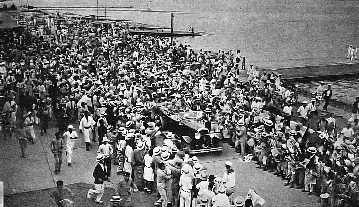 その後、市役所に市長を訪ねる際、沿道は「空の英雄」を見るため市民で一杯だったそうです。