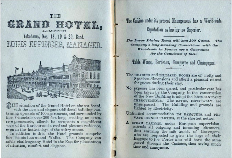 ここでは、明治から大正期に高級ホテルとして輝いたThe Grand Hotel Yokohamaのエピソードを紹介します。